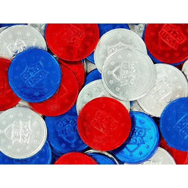 Bag contains 100 USA Patriotic Bubble Gum Candy Coins.