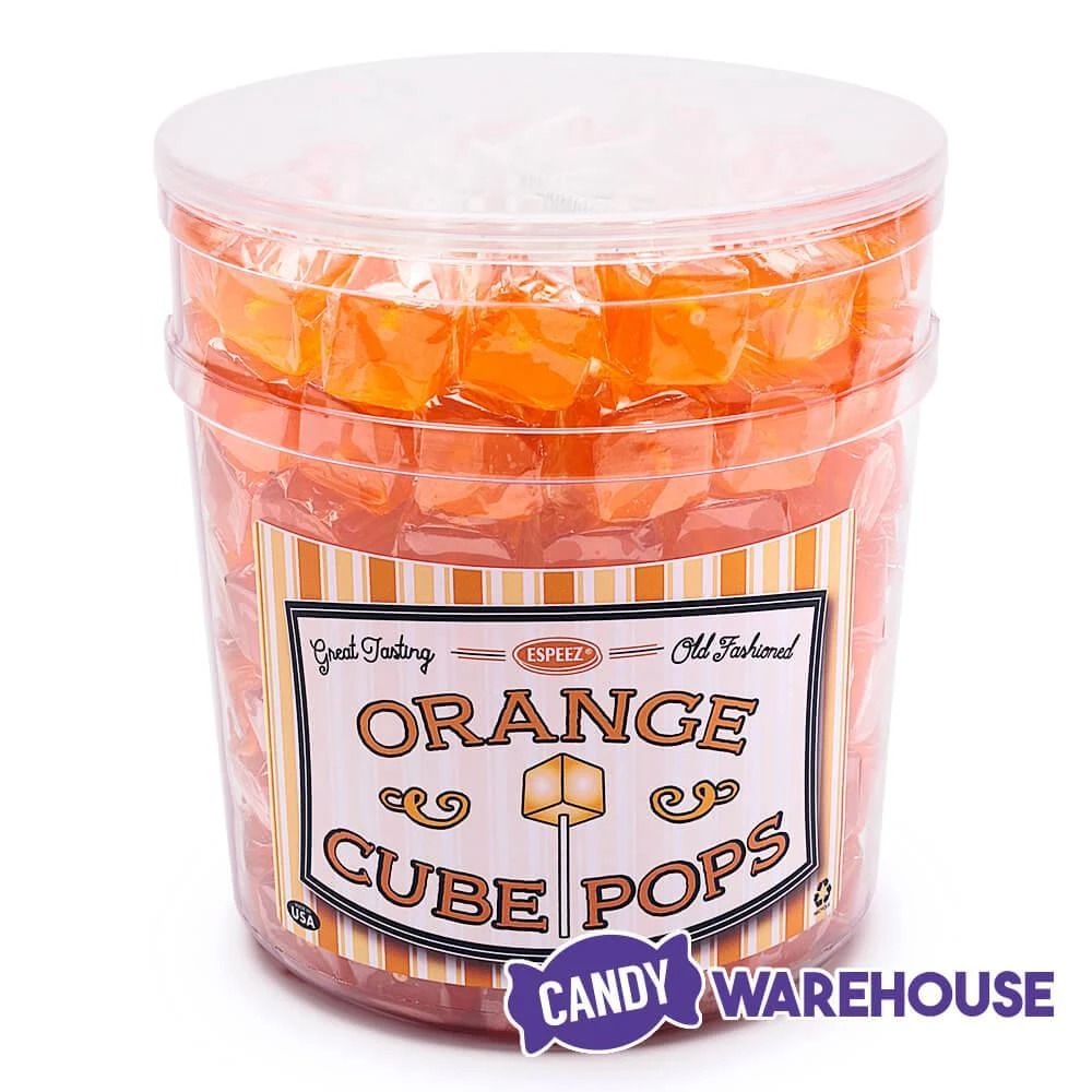 Brighten your candy buffet with the bold color and intense flavor of Espeez orange Cube Pops. A nostalgic nod to the classic square suckers of days gone by, these cube lollipops lend a heartwarming, whimsical accent to social gatherings, birthday parties, and counter displays. Delight trick-or-treaters with this individually wrapped orange lollipop candy thatโs also a great addition to Thanksgiving celebrations. Orange Cube Pops are also perfect for sunny summer picnics and backyard luaus where they lend a tropical vibe. Use the old-fashioned 100-piece tub to bring a pop of vibrant color to your trade show booth or fundraising table. Check out the other eye-popping, jaw-dropping Cube Pops varieties at Candy Warehouse that include Green Apple, Banana, and Groovy Tie-Dye.